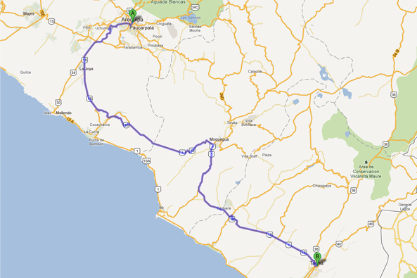 Seguindo o fluxo da estrada pra dentro de Tacna, não foi nem um pouco difícil achar o Hotel El Meson, que fica bem próximo a Praça Central da cidade.