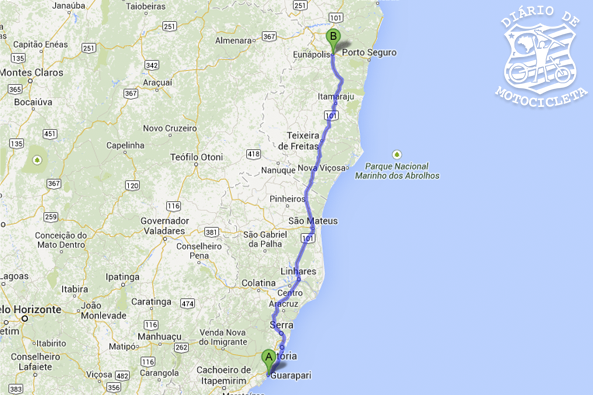 O plano era sair bem cedo de Guarapari/ES rumo à Eunápolis na Bahia... apesar da pouca quilometragem, apenas 590 km, queria chegar com a luz do Sol e poder descansar um pouco, desde Belo Horizonte estou pegando estrada todos os dias e isso cansa muito, aliás, é uma coisa que não faço e não recomendo, mas nosso cronograma é apertado e nosso país continental, então é preciso seguir neste ritmo forte.